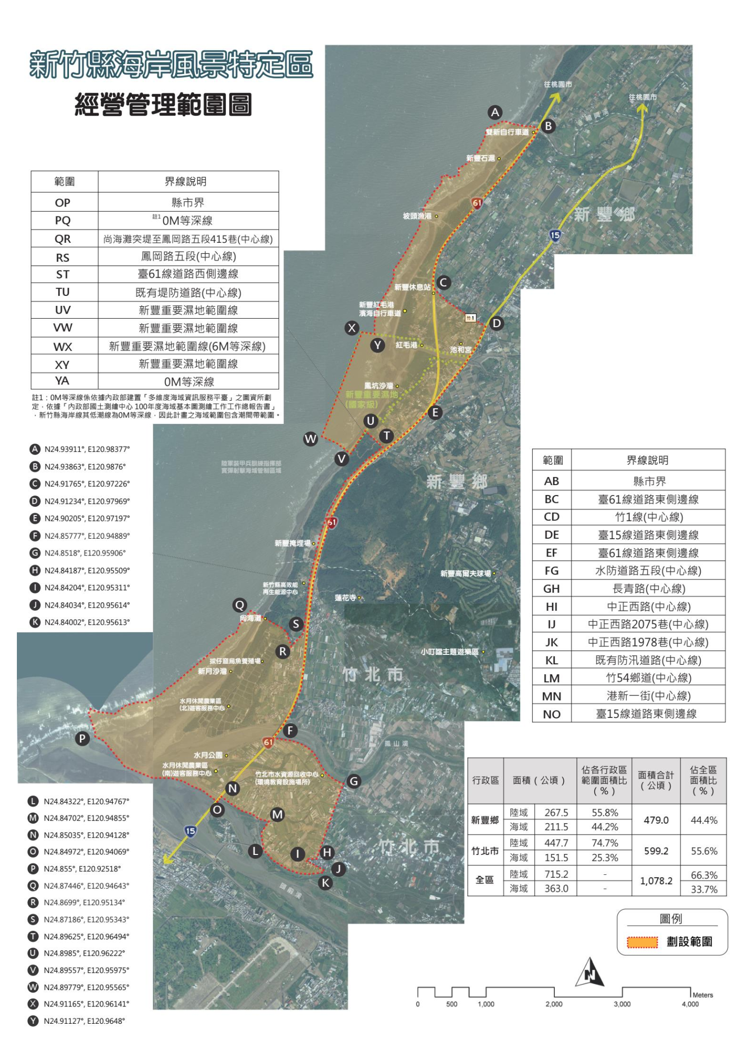 主旨: 公告「新竹縣海岸風景特定區」等級及經營管理範圍,如附圖。